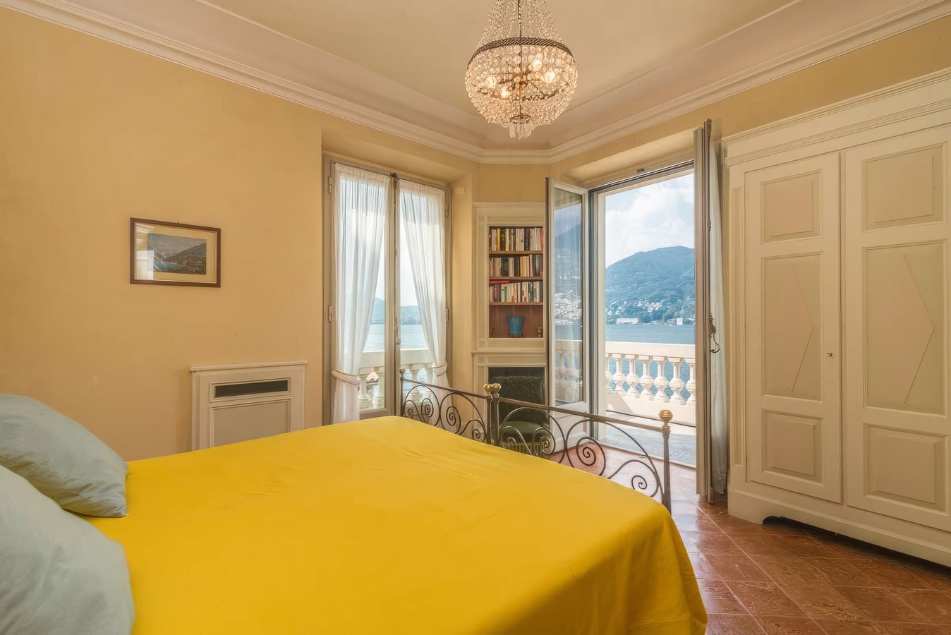 On the top floor there is a central hall and three bedrooms. One double bedroom (with king size, twin-convertible bed and lake view) with an en-suite bathroom (with bath), one double bedroom (with king size, twin-convertible bed and lake view) with an en-suite bathroom (with bath) and one double bedroom (with king size, twin-convertible bed with park view) with a separate bathroom (with bath).