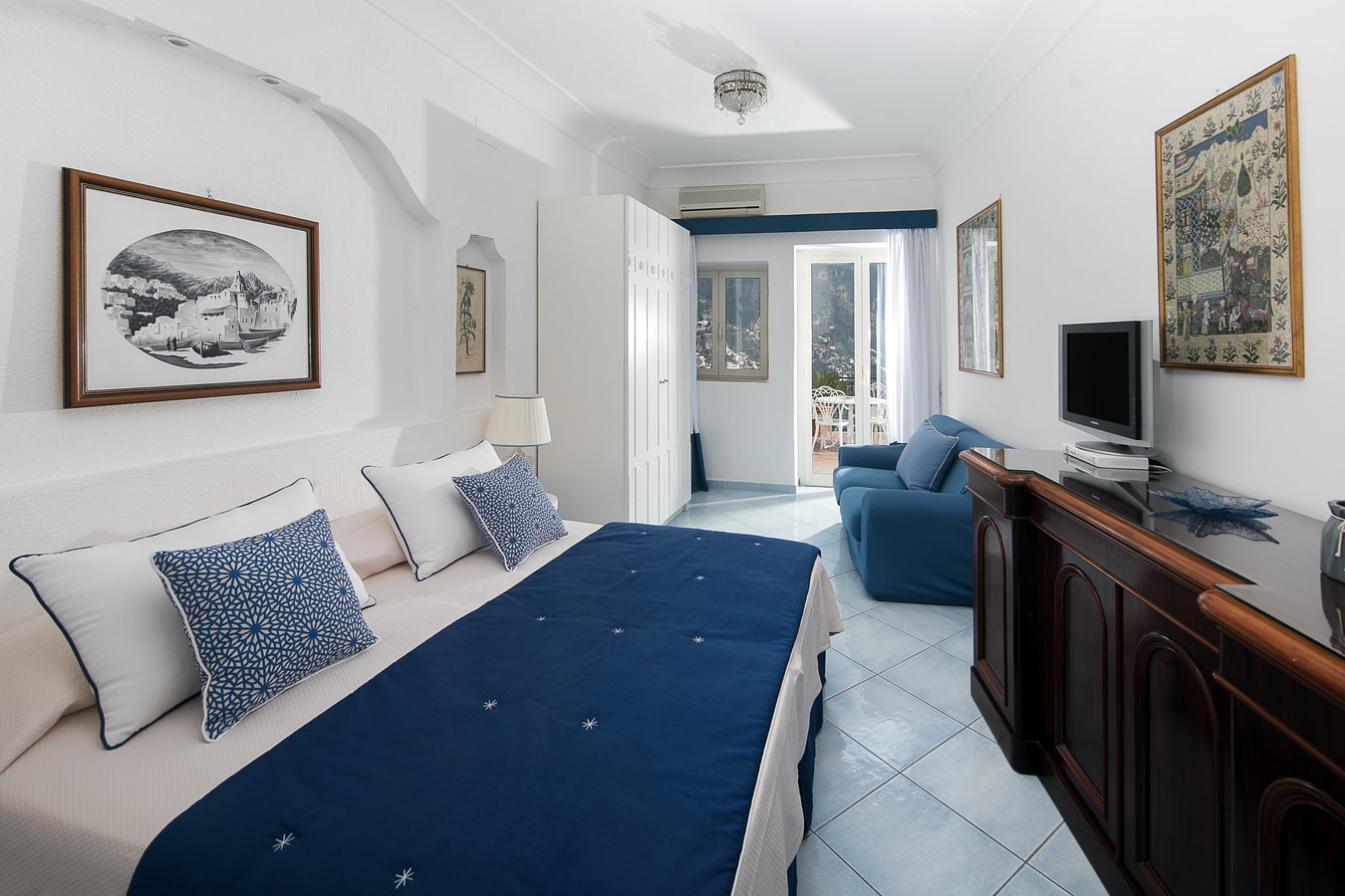 Outside, the villa offers a large terrace with outdoor furnishings and dining area for al-fresco meals, overlooking the sea and Positano town. Furthermore, there is a private and heated swimming pool (0.9m – 1.8m deep; open from May to September).