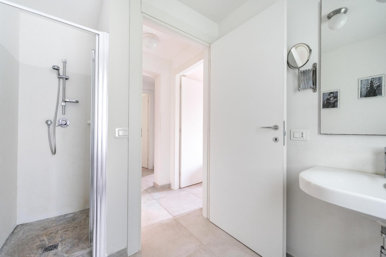 Surrounded by olive and citrus trees, the house develops over one level, with bright interiors. Each room has its own direct access to the garden.