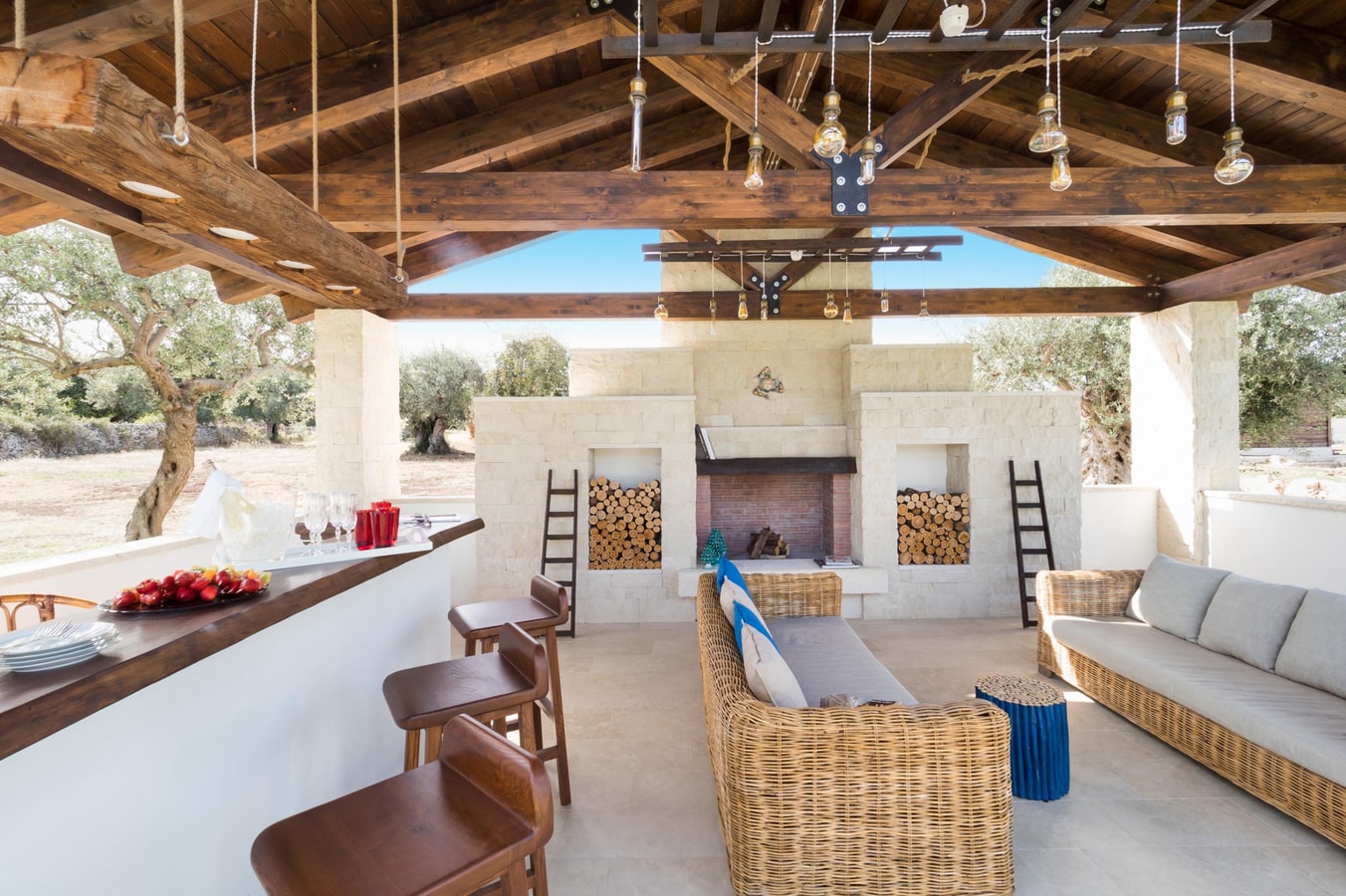 Internal facilities: Air conditioning (5 units), Heating (cost on consumption), Mosquito nets in all rooms (5), Internet Wi-Fi, Satellite receiver, TV (2), Washing machine, Dishwasher, Fridge/Freezer, DVD & CD player, Fireplace, Electric oven, Hob: gas burners (5), Espresso machine, Toaster, Iron, Kettle, Microwave, Mixer, Hairdryer, Highchair, Cot, Bath towels (midweek change), Pool towels (weekly change), Bed linen (weekly change), Table linen, Fire extinguishers, Carbon monoxide detector, Fireproof blanket, Smoke detector, Kitchen/bathrooms/bedrooms cleaned (weekly – 3 h).