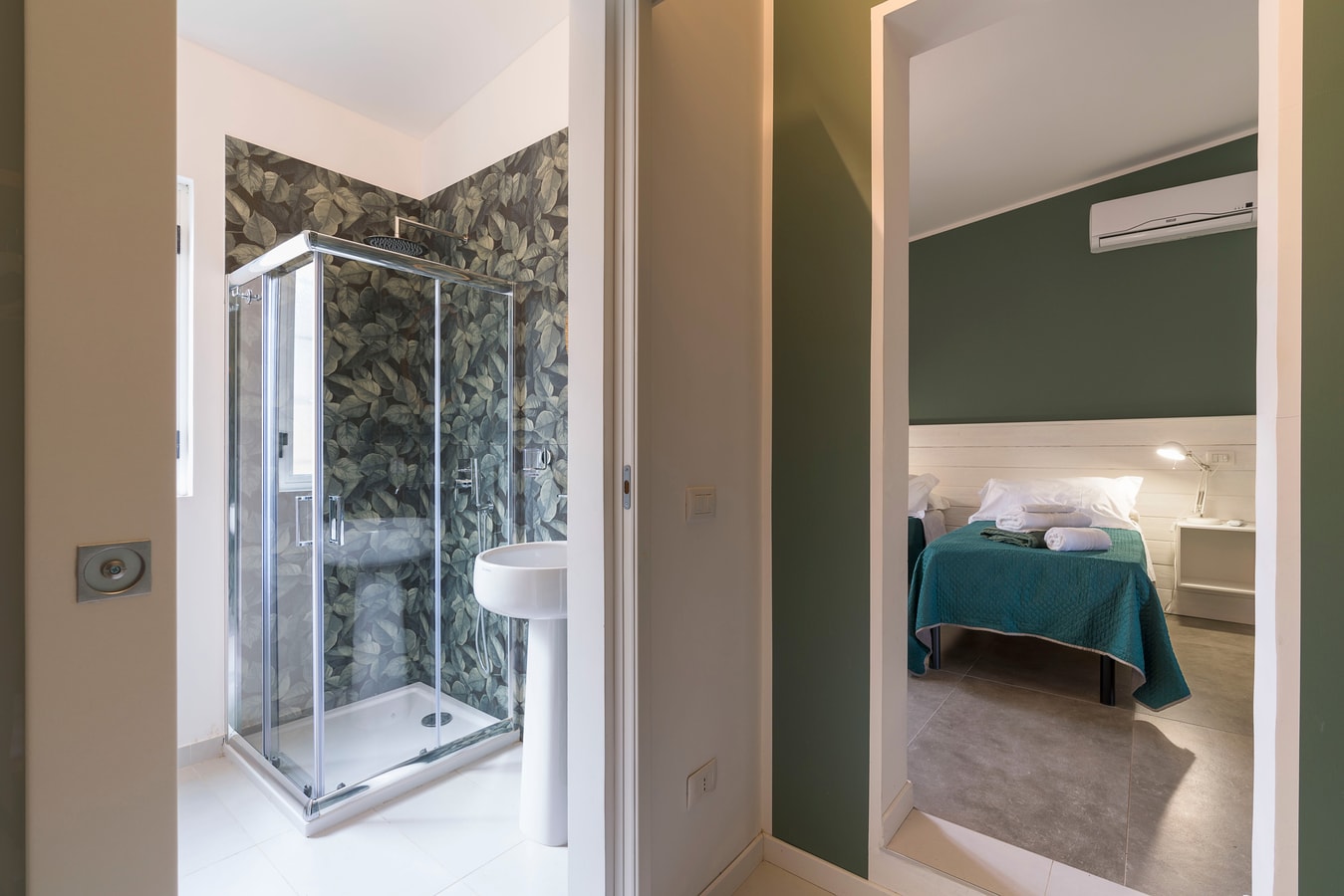 The sleeping area consists of one double bedroom and one twin/double bedroom, both with air conditioning. There is one separate bathroom with shower and one en-suite bathroom with shower (to the twin bedroom).
