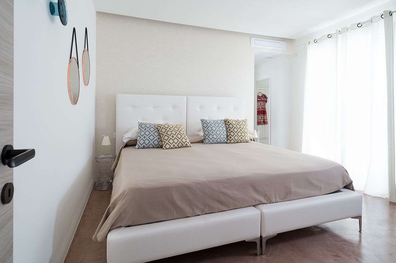 The villa develops over one level. Inside, we find the living/kitchen area with large doors that open onto the terrace and the modern kitchen with table and chairs and equipped with built in appliances. The sleeping area consists of two bright double bedrooms, both with en-suite bathrooms with shower, and a third bedroom with double sofa bed. There is one separate bathroom with shower.