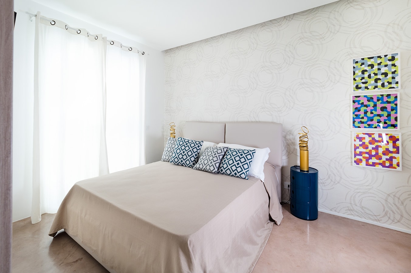 The villa develops over one level. Inside, we find the living/kitchen area with large doors that open onto the terrace and the modern kitchen with table and chairs and equipped with built in appliances. The sleeping area consists of two bright double bedrooms, both with en-suite bathrooms with shower, and a third bedroom with double sofa bed. There is one separate bathroom with shower.