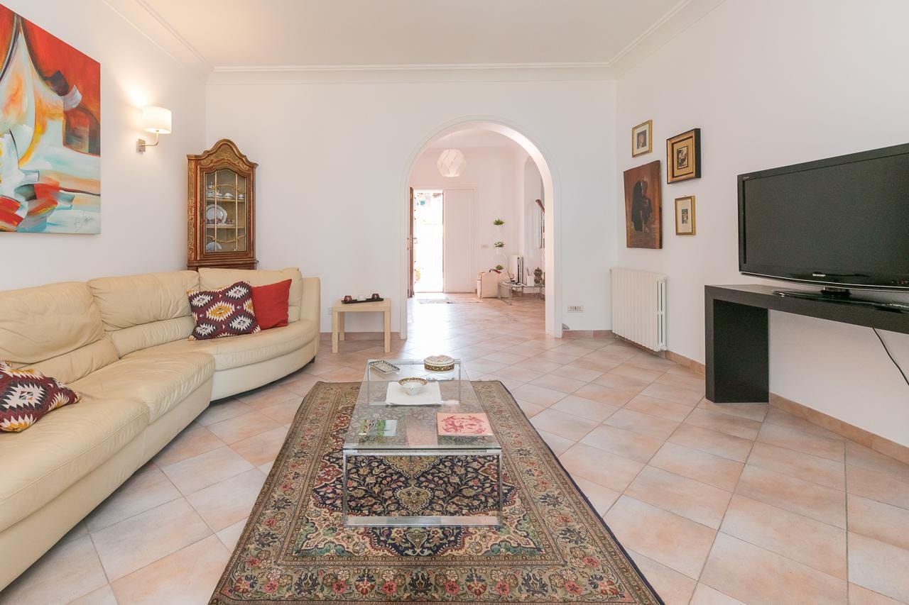 Villa Ciclamino (560 sqm) is on a raised ground floor and includes a lounge (with sofa), dining area and well-equipped kitchen, as well as five bedrooms, five bathrooms and one guest bathroom (with toilet):