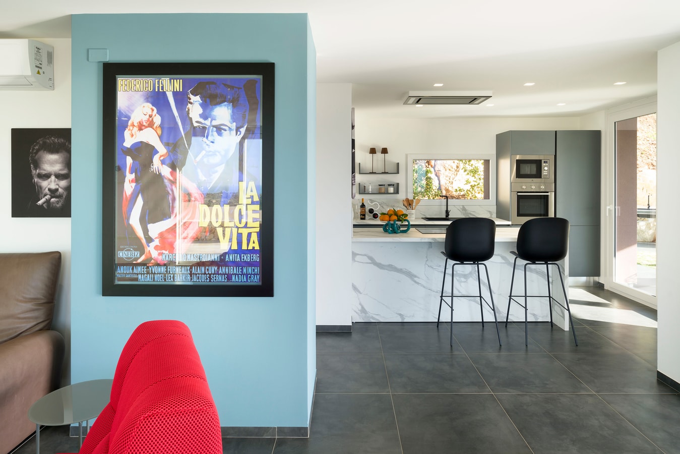 Facilities: Air conditioning (units in all rooms), Heat pumps (all rooms), Internet Wi-Fi, TV (2), Kitchen, Fridge freezer, Oven, Microwave, Induction hob: 5 burners, Dishwasher, Coffee percolator, Espresso machine, Kettle, Mixer, Toaster, Washing machine, Iron, Bed linen (weekly change), Bath towels (twice weekly change), Pool towels (weekly change), Cot, Fireproof blanket, Smoke detector, Garden, Terrace, Private swimming pool, Sun loungers, Outdoor dining, Barbecue, Outdoor shower, Private parking.