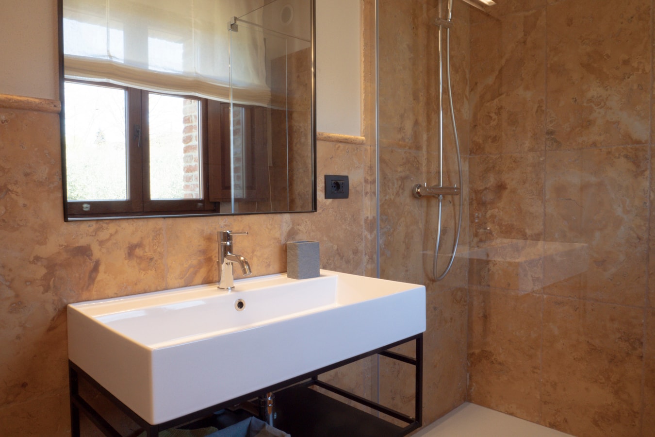 On the first floor there are four double bedrooms (with double beds) with ensuite bathrooms (with shower, basin, bidet, toilet) and one double/twin bedroom (with two single beds that can be joined) with ensuite bathroom (with shower, basin, bidet, toilet). An extra single bed can be added in two of the double bedrooms.